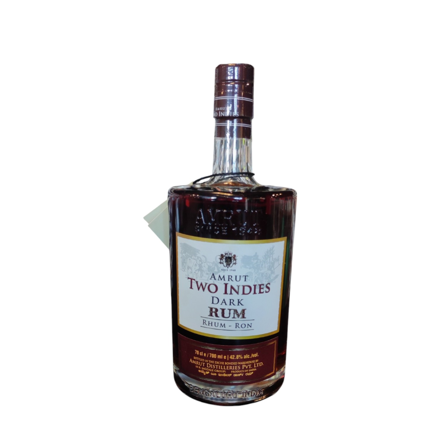 Amrut Two Indies Dark Rum est un rhum ambré élaboré par la distillerie Amrut, située à Bangalore, dans l’État du Karnataka, en Inde. Il s’agit d’un assemblage unique de rhums provenant d’Inde et des Caraïbes (Jamaïque, Barbade, Guyane)468.